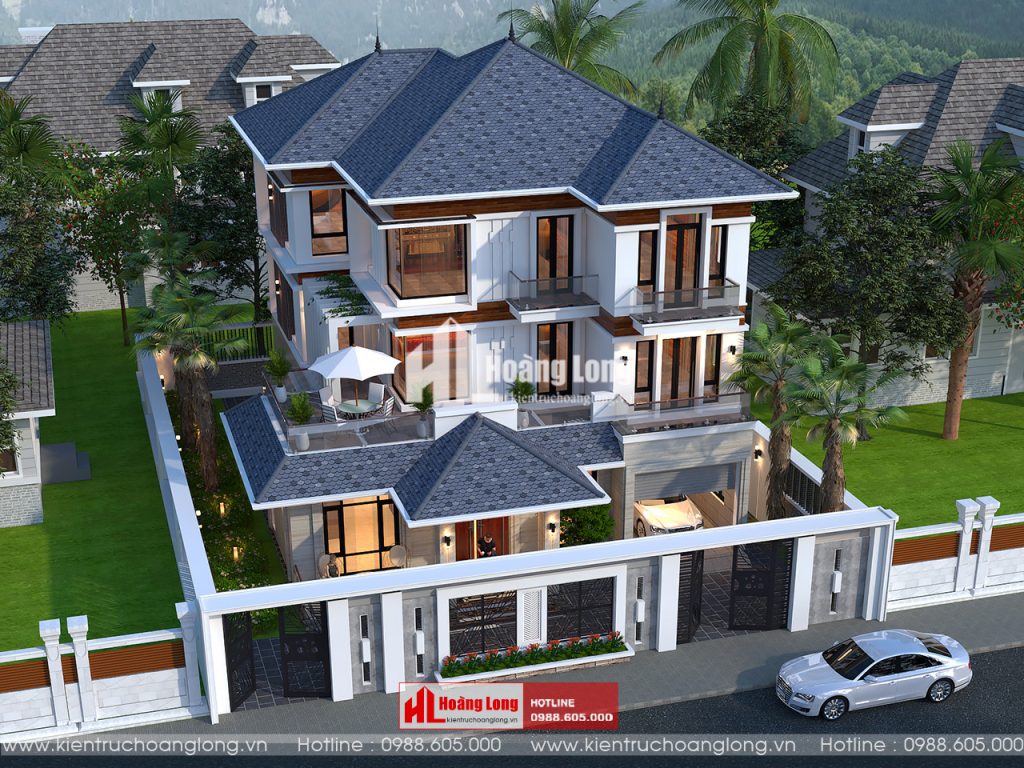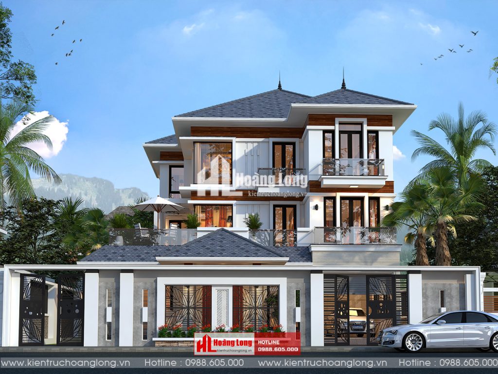 Liên hệ kiến trúc Hoàng Long – Chuyên thiết kế biệt thự 3 tầng mái Nhật Hải Dương