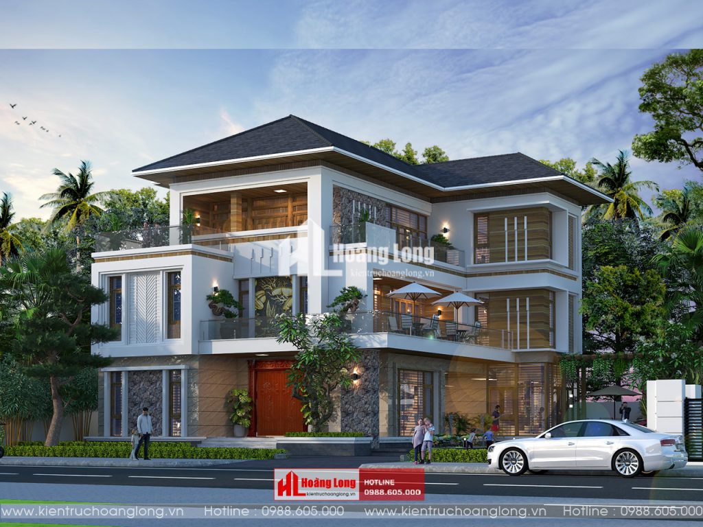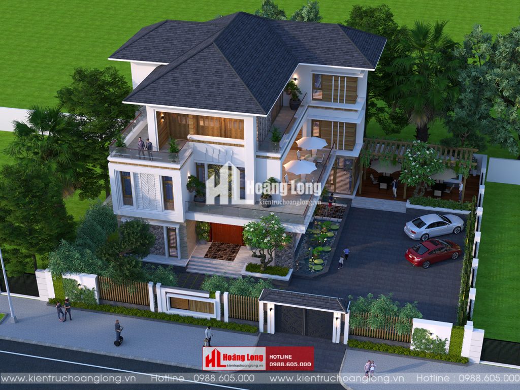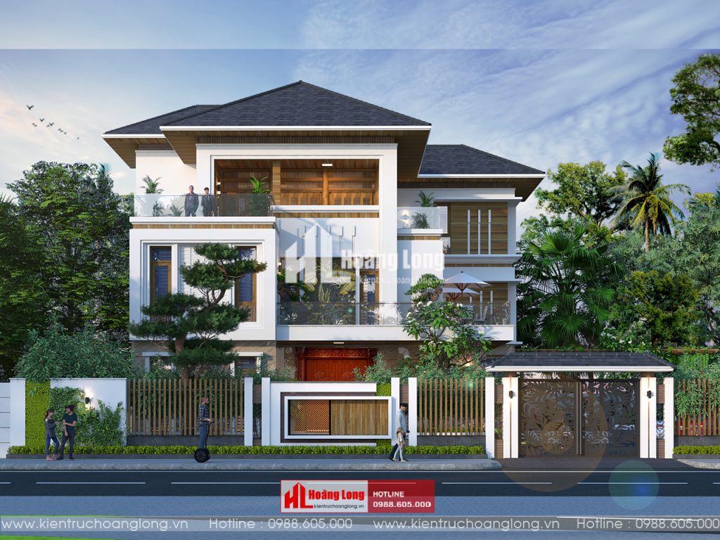 Kiến Trúc Hoàng Long – Chuyên thiết kế biệt thự mái Nhật Hà Nam 3 tầng 2 mặt tiền