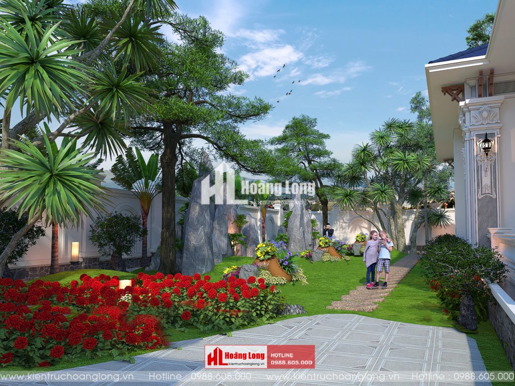 - Kiến trúc và cảnh quan: Ngôi nhà nổi bật với hệ mái Nhật, mang vẻ đẹp hiện đại và khả năng chống nóng, thoát nước hiệu quả. Các chi tiết tân cổ điển được lồng ghép tinh tế qua phào chỉ, hoa văn nhẹ nhàng, tạo sự sang trọng. Biệt thự có khoảng sân vườn lớn phía trước, thích hợp cho các hoạt động ngoài trời.